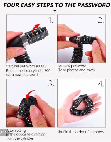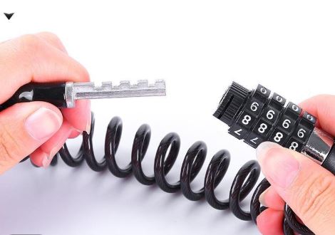 Multipurpose strong Self Coiling Lock Cable with 4 Digit Combination password for keyless convenience.