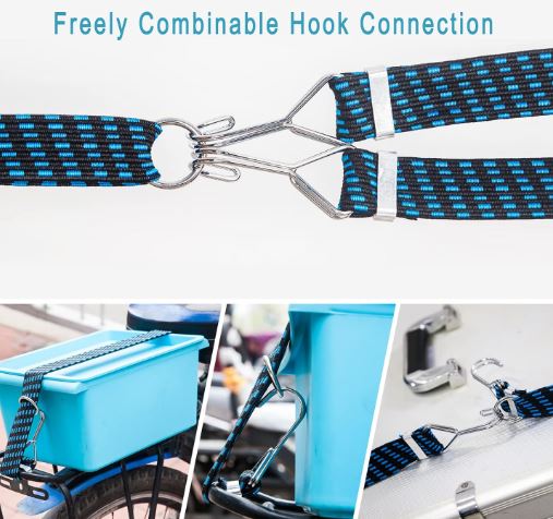 - MULTIFUNCTION USE: The bungee cords set is an ideal tool for many different needs. It can be used not only for fastening luggage on bicycles, motorcycles or cars, but also for moving boxes, home use, camping or hanging clothes, etc, practial bungee cord with hook brings more convenience into life.
