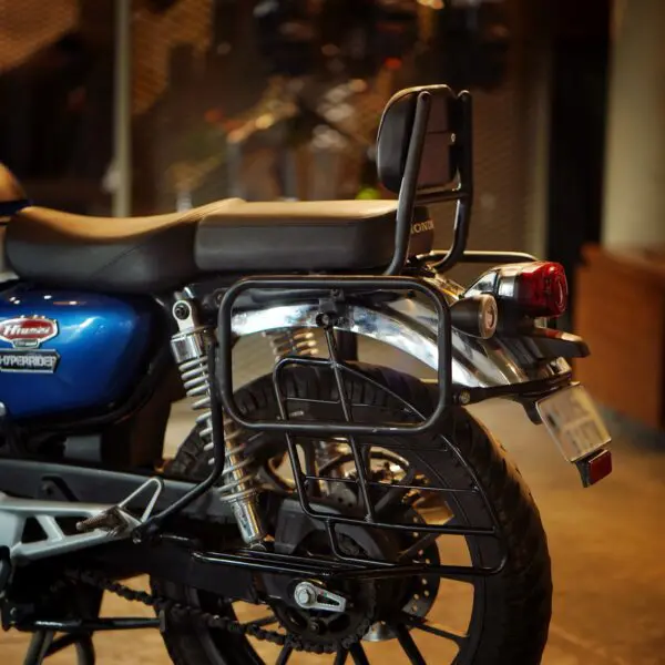 The all-new Honda H’ness Backrest Type 2 with Helmet Lock in Facility. Made with high-strength steel wrapped in high-grade cushion foam in-between. This ensures a secure and comfortable restraining of the pillion in the event of sudden acceleration. The Backrest is shaped not only to complement the sophisticated looks of the Honda H’ness but also to be helpful in grabbing and moving the bike around in a parking space, and also to be a provision to grab and lift the heavy bike up in case of a fall.