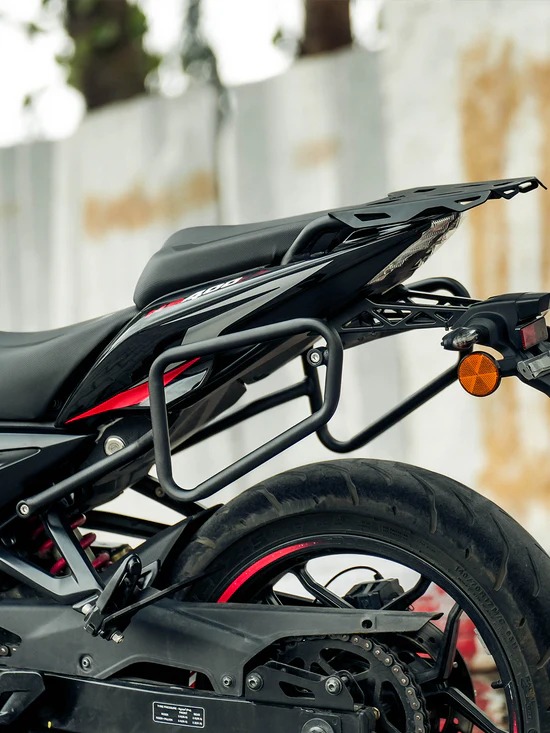 The LCB Aviator Saddle Stay for the Bajaj Pulsar NS400Z, available at Legundary Custom Built, is a robust and reliable accessory designed for touring enthusiasts. This saddle stay ensures the secure attachment of saddlebags, preventing them from coming into contact with the bike's body, thus avoiding scratches and damage. Constructed from high-quality mild steel, it offers excellent durability and resistance to the elements. The design seamlessly integrates with the bike’s frame, maintaining its sleek appearance while enhancing its practicality. It's an essential upgrade for riders looking for extra storage capacity on long rides without compromising style or safety.