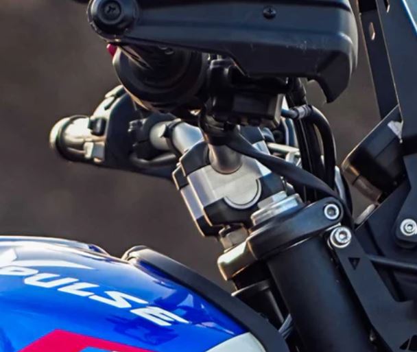 The Legundary Hero Xpulse 210 Dodger Handle Bar Riser available at Legundary Custom Built is designed to enhance rider comfort and control by adjusting the handlebar height. Crafted from durable mild steel this riser offers a direct fit to the existing bar mounts without requiring any modifications or additional fittings. By elevating the handlebars, it promotes a more upright riding posture, reducing strain on the wrists, shoulders, and back during long-distance rides. This ergonomic adjustment also facilitates easier transitions between seated and standing positions, which is particularly beneficial during off-road adventures. The sleek black powder-coated finish not only adds to the aesthetic appeal of your Hero Xpulse 210 but also provides resistance against corrosion and wear. Whether you're navigating city streets or tackling rugged trails, this handlebar riser is an essential upgrade for riders seeking improved comfort and handling.