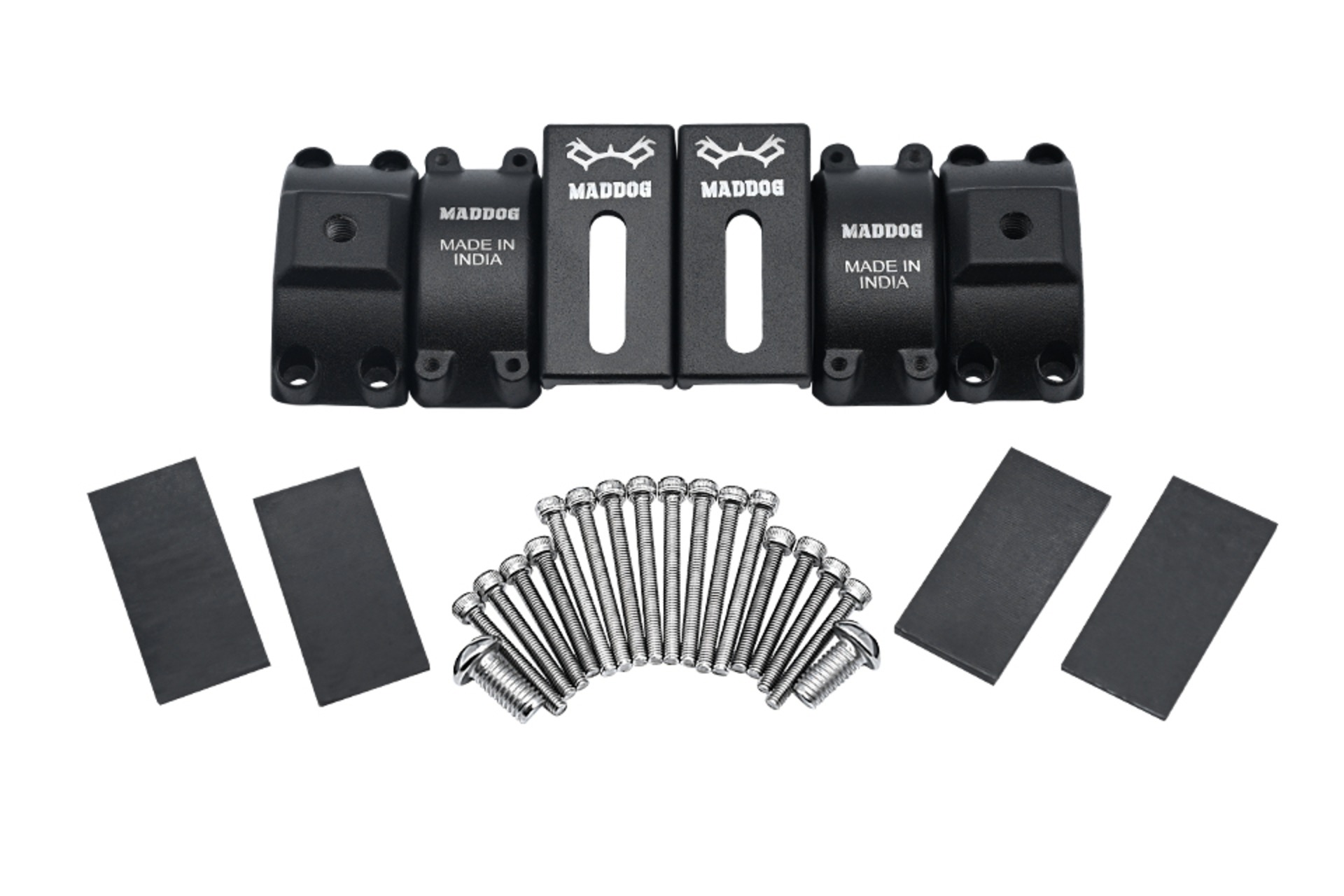 This Maddog Light Mounts allows fitment of any LED Lights to engine guards, crash bars, or any tube 20mm-48mm (0.629in-1.5in) in diameter. These light mounts come with a unique rubber padding will protect from metal to metal contact and also helps the clamps to securely grip a wide range of tube diameters and include an optional, fully rotatable and 3-D Axis mounting shelf to create a super versatile and robust light mounting solution.