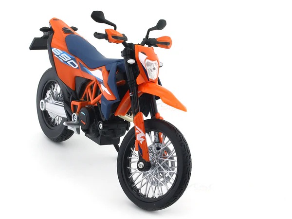 Experience the thrill of the KTM 690 SMC R with this detailed 1:12 scale model. Renowned for its dynamic performance and bold styling, this model accurately captures the striking orange, blue, and white colour scheme of the original bike, making it a standout addition to any collection.