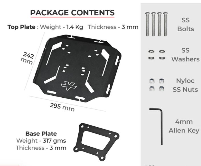 Expand the luggage-carrying capacity of your RE Himalayan (2016-20) with our quick mount rear rack from ViaTerra. It gives you the option to mount your luggage, using straps or bungees and provides more space for bigger bags. There are dedicated quick release slots available to pass-through the mounting straps of the ViaTerra POD Expanders or Drybag 8L for easier usage. It also has angled edges that improves bending resistance thereby preventing plate flex under loading conditions.