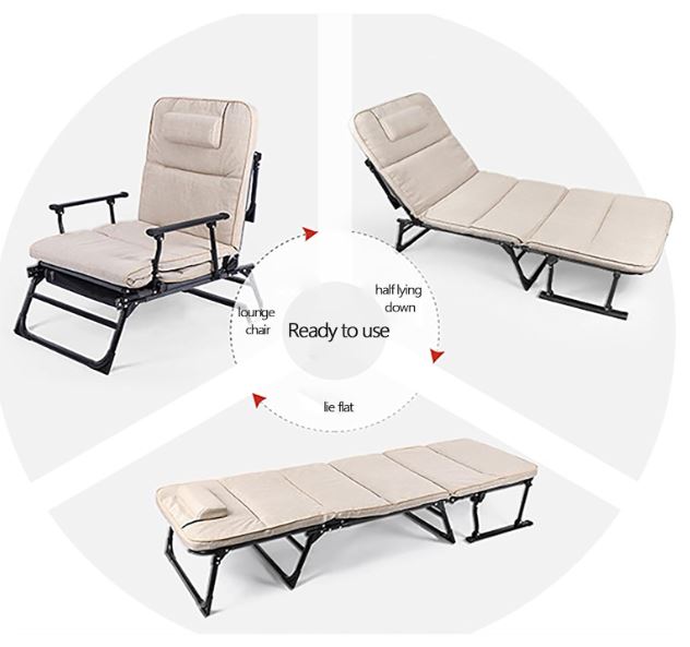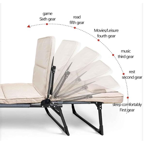 • SAFE AND COMFORTABLE: Our foldable bed with mattress beach lounger is designed with non-slip feet for stability. The folding camping cot also comes with a removable seat cushion to help you fall asleep quickly.