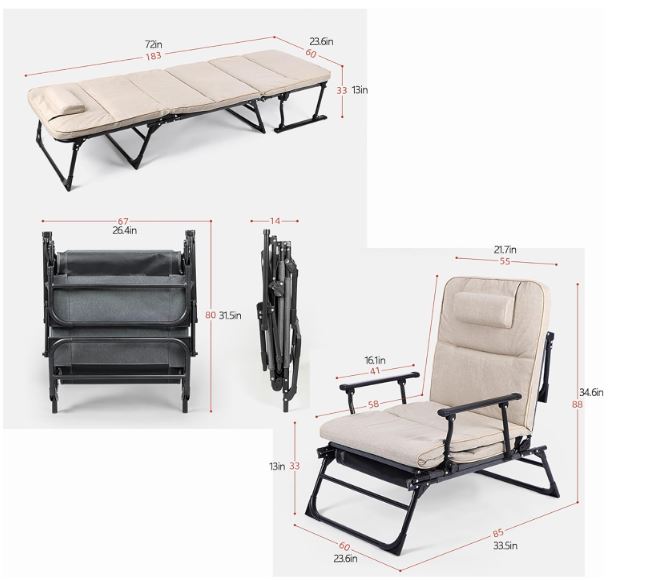 AS-PORTABLE MULTY USEABLE CHAIR WITH BED-CAMPING ACC-CREAM WHITE