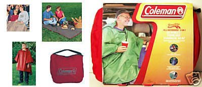 • Waterproof blanket, poncho and stadium seat in one