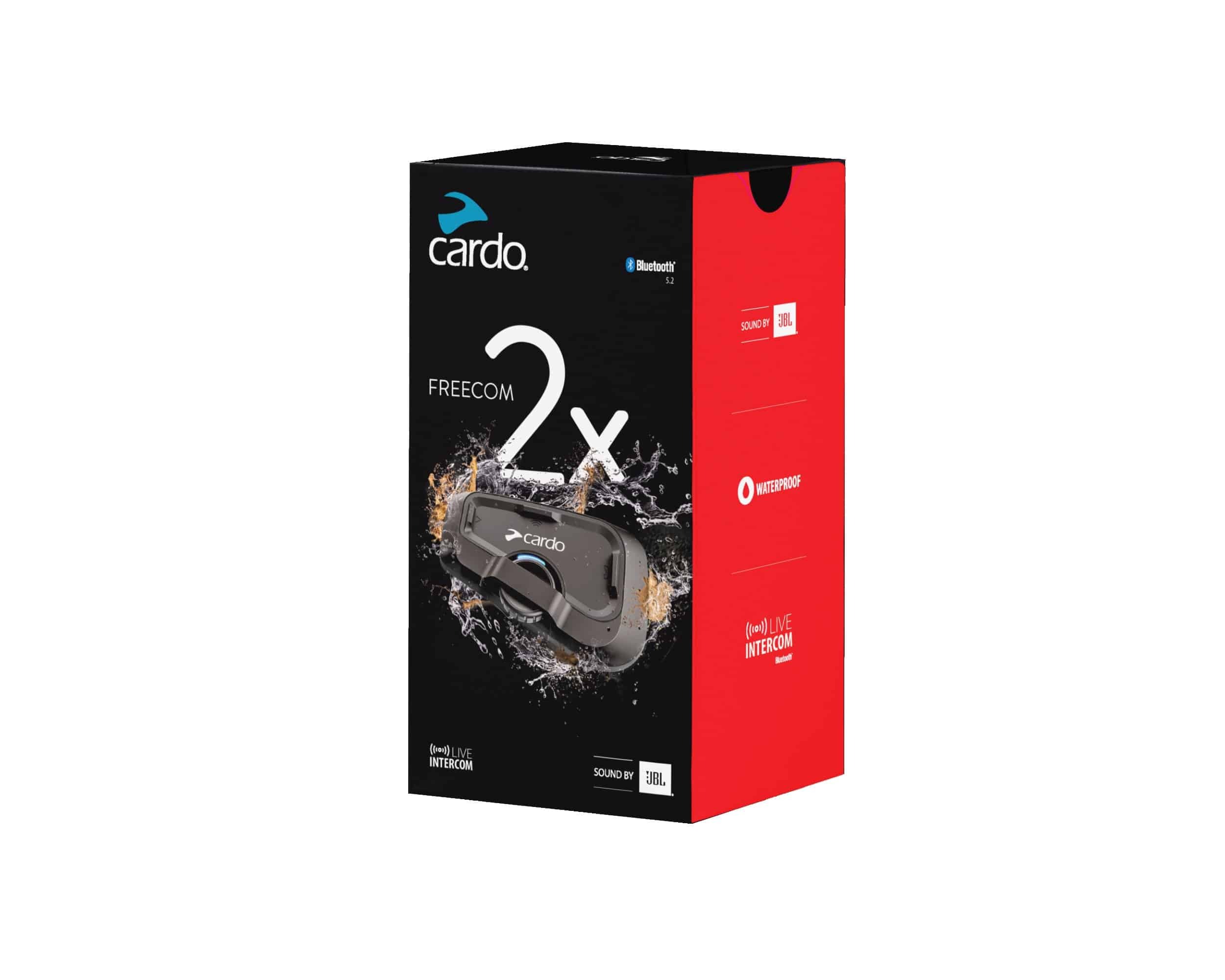 Cardo FREECOM 2x – The World’s best Bluetooth communicator. Equipped with Sound by JBL and the latest Bluetooth technology, Freecom 2x introduces Live Intercom, an auto-reconnecting Bluetooth connection for two riders, with live sound like never before. A waterproof, jog-dial and over-the-air software updates provide additional value to an already incredible package. The FREECOM 2x is a rider-to-rider communicator with a range of up to 800 meter, equipped with 40 mm JBL speakers & JBL sound profiles, USB type C, Bluetooth 5.2, 13 hours talk time with fast charging, FM radio, and a two-year warranty.