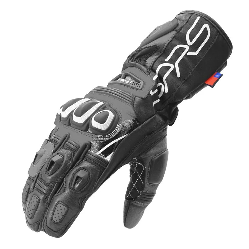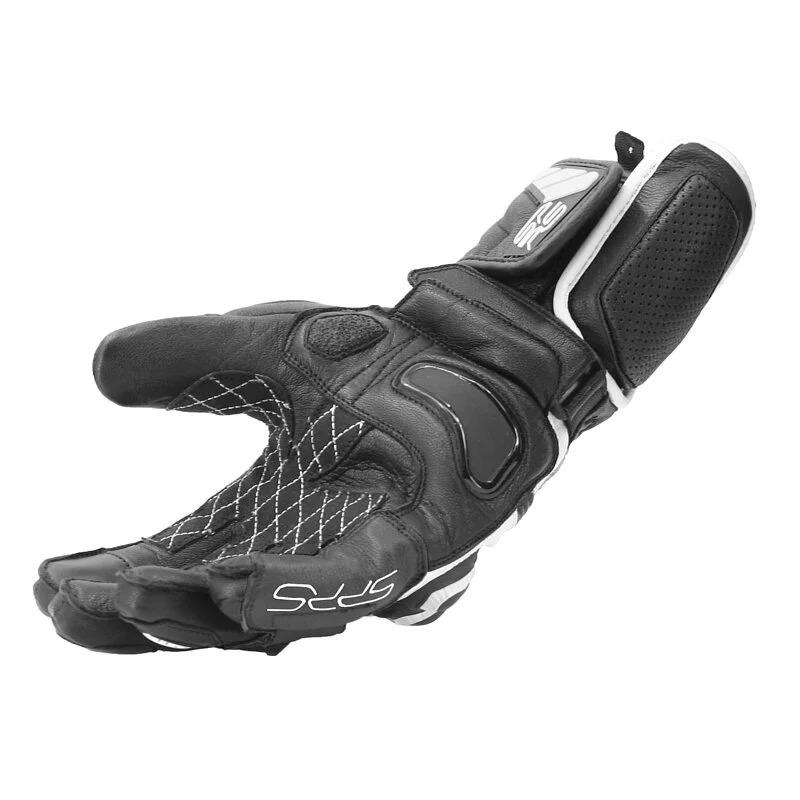 Speed R Short cuff Mix of premium leather and mesh for protection and breathability Carbon knuckle guard Extra padding and carbon guard at palm area Rubber guard at wrist and pinky area High quality sheepskin leather Carbon fiber protectors on knuckle and fingers Back leather perforated for wet management Leather reinforced palm design Shock abosorbing EVA insert piece on palm
