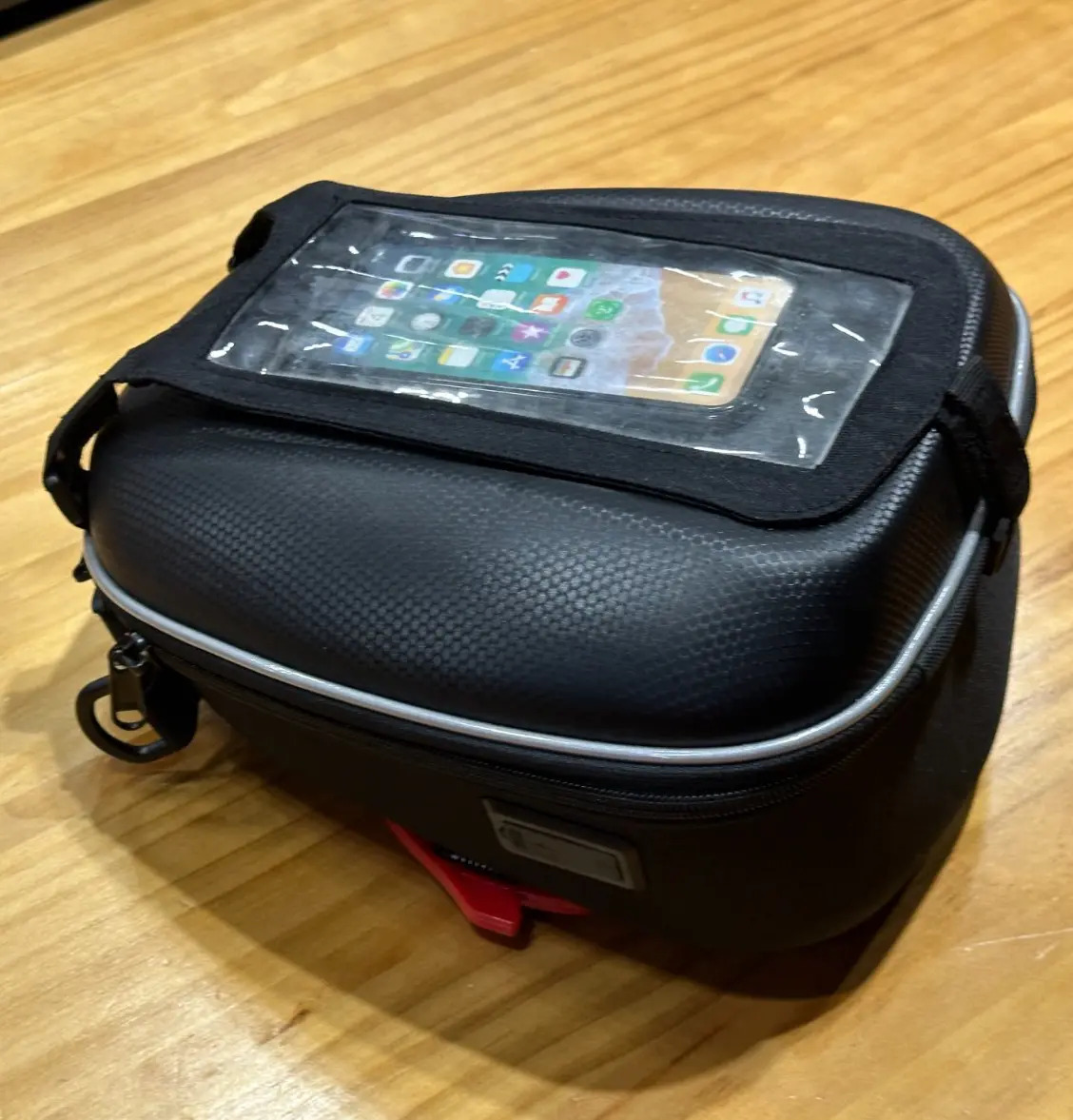 tank bag is designed for motorcyclists who travel light. This sleek, semi-rigid, universally compatible tank bag for bike riding offers 21L unexpanded and 26L expanded volume. It combines practicality and style, ensuring ample space for essentials without compromising aesthetics