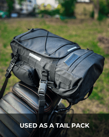 With a bottle compartment and quick access pockets, the Compack 25 has got ample space to carry all your belongings. In addition to these, the Compack 25 also includes a removable beavertail for additional storage. The beavertail comes with an Elastic Band Cord on one side and a transparent pocket on another for easy visibility and organisation. Plus, when you’re not using the Compack 25 on your motorcycle, it can easily be converted into a backpack for added convenience on the go. Don’t let wet weather ruin your ride – trust the Compack 25 to keep your essentials dry and protected.