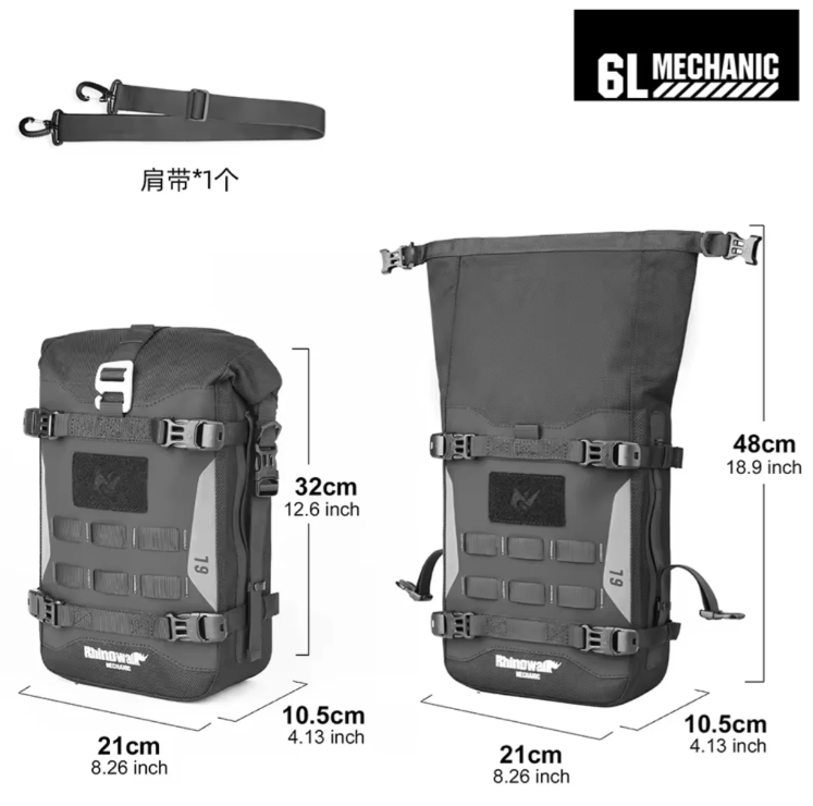 Introducing the Rhinowalk Crash Bar Bag, a lightweight and waterproof accessory for your motorcycle. With a 6L capacity, it's perfect for storing your essential items while on the road. Its Molle system allows for easy attachment to your bumper guard. Travel with confidence, knowing your belongings are safe and secure.