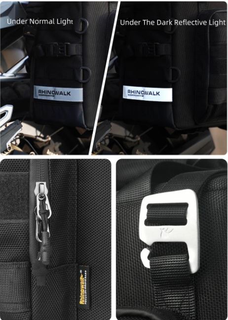 Simple Installation: The back of the bag contains a quick release tool for quick installation. It is generally used in motorcycles on the market, and can be installed with or without an exhaust pipe. Provide multiple sizes of gaskets, suitable for side frames with a pipe diameter of 10mm-23mm. The fixed position is locked with a buckle function to avoid loosening during bumpy riding.