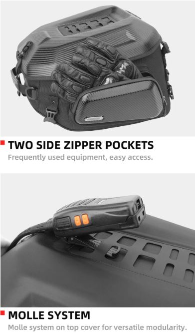 Large Storage Space: The normal use capacity of the main bag is about 23L, and can be expanded to 35L. When fully expanded, it can fit a full-face helmet easily and worry-free with lockable zipper.