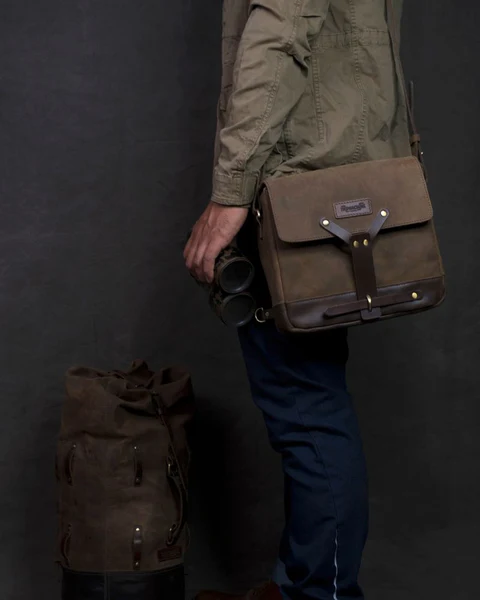 the messenger bag is inspired from the swiss ammunition bag of the second world war. we have hand forged the bag using the finest materials so that it can survive a war. it's an ideal everyday satchel and can easily accommodate an ipad, riding gear and even a couple of t-shirts. it has two small pockets on the inside and one at the back.