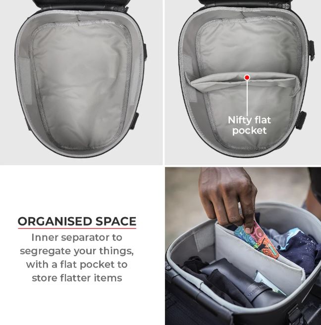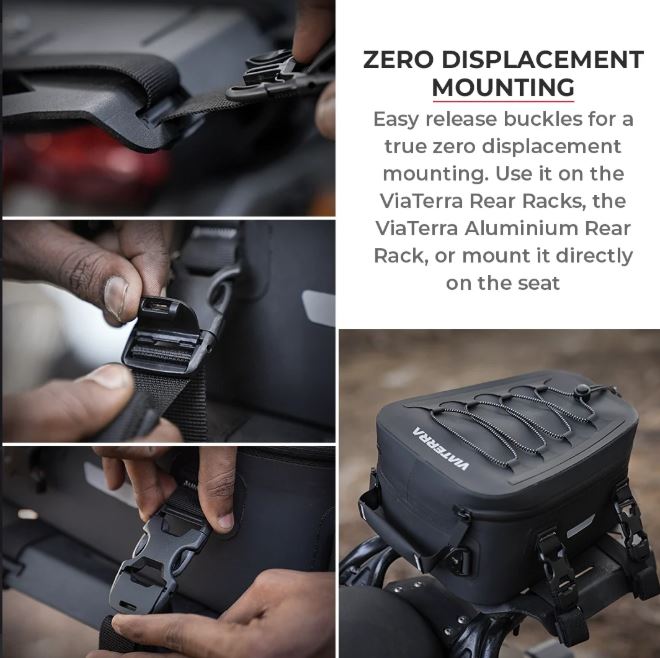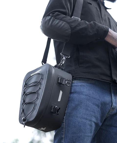 Looking for a sleek, waterproof tail bag for short tours? Look no further than the Viaterra 100% Waterproof Tail Bag. Right off the bat, its triple layer waterproof fabric, built using ultrasonic seam welding technology, and waterproof zippered closure ensure a dry space for your belongings. Next, don't be misled by its 6-liter capacity; not only does it get a seperator to easily segregate your items, but the internal mesh zip pocket and adjustable EBC external net can be employed to pack in additional cargo like your gloves or rain wear. And finally, the external carry handle and removable shoulder belt give you a couple of options to carry it easily once you've reached your destination!