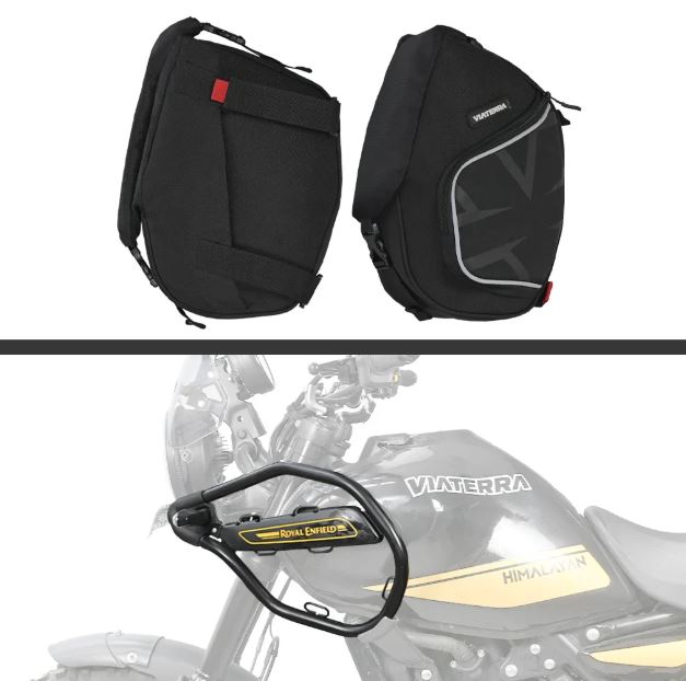The RE Himalayan 450 Trailpack builds on the universally popular variant for the Himalayan 411 model. Continuing with the idea of ideal weight distribution when loading luggage onto a motorcycle, the RE Himalayan 450 Trailpack stands out for its unique design that allows you to position your gear towards the front of the bike. Sold as a pair to ensure balance, these bags combine form and function with a stylish, purpose-built design. With a 16L capacity, they are an excellent alternative to traditional tank bags, ideal for riders who enjoy challenging trails. This Trailpack is perfect for carrying essential items such as a pump, toolkit, spares, extra tubes, and energy bars, all while maintaining balanced weight distribution. Additionally, seam-sealed inner liners rated to withstand 5000mm of water pressure are included with the product, making it 100% waterproof and capable of enduring heavy monsoon rains.