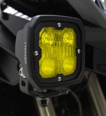 The Denali TriOptic ‘Selective Yellow’ lens kit for D4 lights are designed to maximize visibility in foggy and rainy conditions. The Selective Yellow color of the lens increases visibility in fog and rain by blocking blue frequencies which reflect off water vapor and decrease vision. This Selective Yellow lens kit also provides for even more daytime visibility to oncoming traffic.