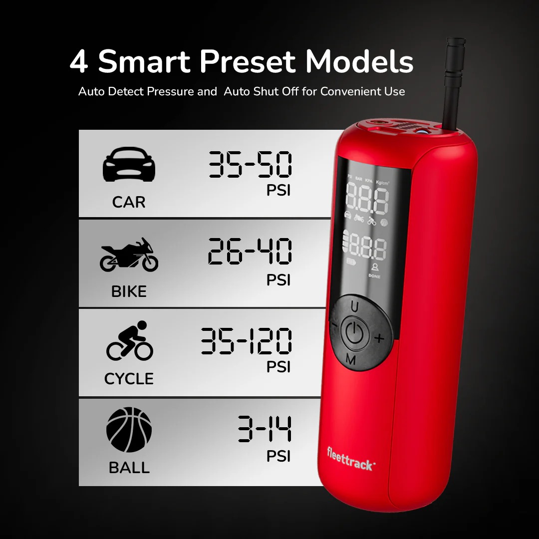 AUTO SHUT-OFF & PRESET PRESSURE FUNCTION: Automatically halts when the desired pressure is reached, preventing over-inflation. The preset function offers hands-free operation, ideal for precise inflation.