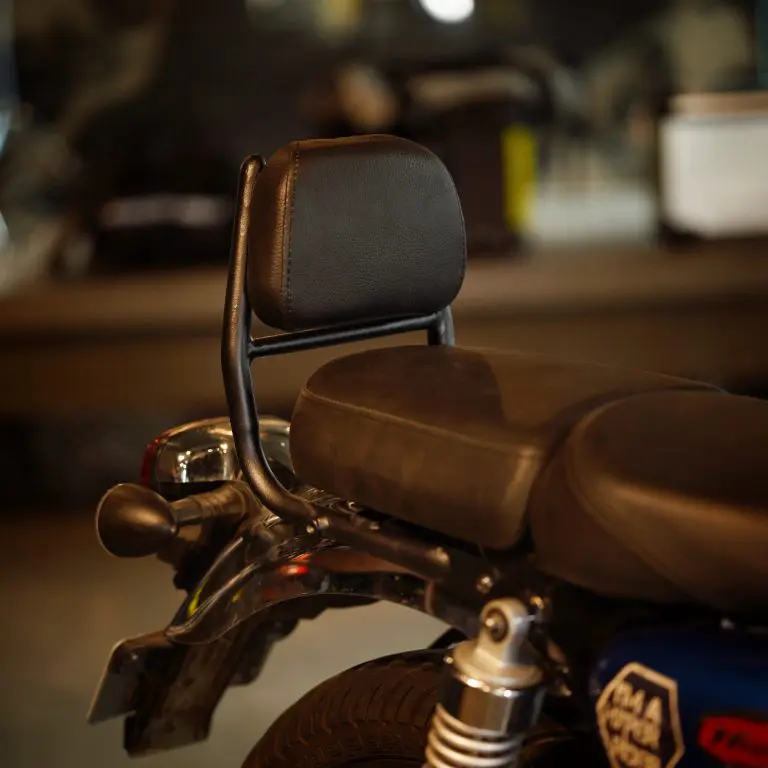 The all-new Honda H’ness Backrest Type 2 with Helmet Lock in Facility. Made with high-strength steel wrapped in high-grade cushion foam in-between. This ensures a secure and comfortable restraining of the pillion in the event of sudden acceleration. The Backrest is shaped not only to complement the sophisticated looks of the Honda H’ness but also to be helpful in grabbing and moving the bike around in a parking space, and also to be a provision to grab and lift the heavy bike up in case of a fall.