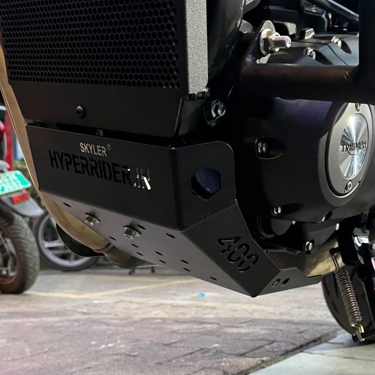 The Triumph Speed 400 Hyperrider Aluminium Bashplate, is the encapsulation of both tough toughness and a lovely plan for your bike. This bashplate isn’t a simple embellishment; it’s a confirmation of meticulous craftsmanship and inventive building. Outlined to secure your Triumph Speed 400 from the rigors of the street, it shields crucial components, including the motor. It depletes it from potential harm due to unpleasant territories or impediments. The bash plate’s vigorous development guarantees that your bicycle remains secure amid bold rides. Moreover, it’s a la mode and custom-made plan includes a touch of particular identity to your cruiser, paying tribute to the legacy of the Hyperrider brand it speaks to.