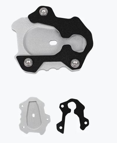 Enhance the stability of your KTM Adventure 390 (2025 model) with the Aluminium and Mild Steel Side Stand Base in a striking silver and black combination, available at Legundary Custom Built. This dual-material design features a durable mild steel lower plate for strong ground contact and a lightweight aluminium upper plate for improved corrosion resistance and aesthetics. The widened base increases the surface area of the side stand, preventing the bike from sinking into soft surfaces like sand or mud, making it an essential upgrade for touring and off-road riders. Precision-engineered for a perfect fit, this side stand base ensures reliable performance and adds a rugged yet refined touch to your motorcycle.