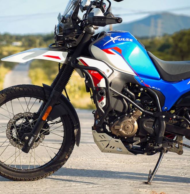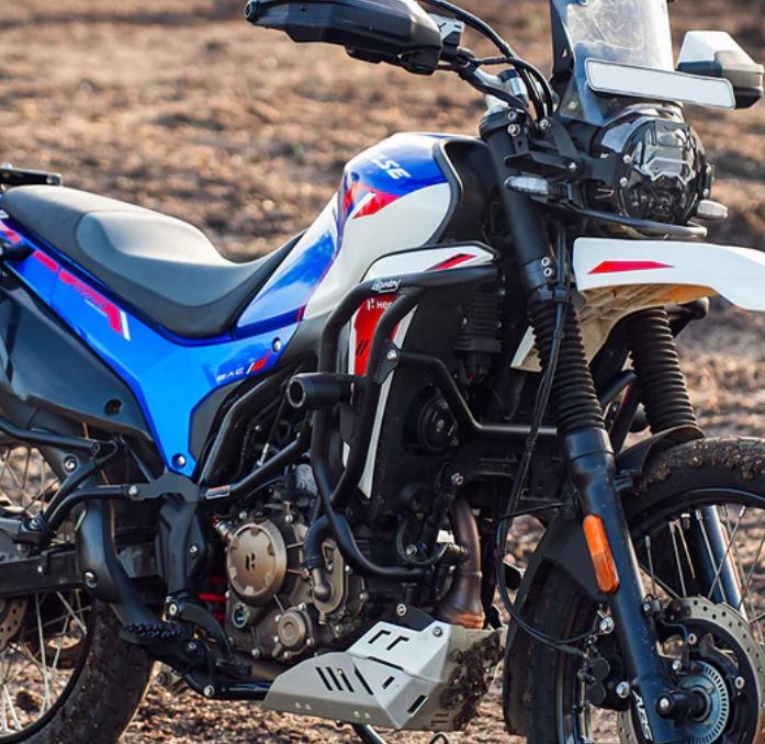 The Legundary Hero Xpulse 210 Xplorer Crash Guard for the Hero X pulse 210 available at Legundary Custom Built is designed to provide robust protection for your motorcycle during off-road adventures and daily commutes. Crafted from high-quality mild steel this crash guard is engineered to absorb and distribute impact forces, safeguarding critical components like the engine radiator and fuel tank in the event of a fall or collision. The guard features a precision engineered design that ensures a perfect fit for the Hero Xpulse210 allowing for easy installation without the need for modifications. Its powder coated finish in Black Red or White not only adds a stylish touch to your bike but also offers resistance against corrosion and wear.