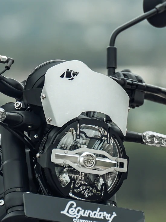 The Royal Enfield Guerrilla 450 Zephyr Metal Visor from Legundary Custom is a premium accessory designed to enhance both the style and functionality of your motorcycle. Crafted from durable metal, this visor offers superior protection against wind, debris, and glare, improving visibility and comfort during rides. Its rugged yet sleek design adds a unique aesthetic to your Guerrilla 450, complementing the bike’s adventurous spirit. With a corrosion-resistant finish and easy installation, the Zephyr Metal Visor is the perfect upgrade for riders looking to combine practicality with a bold, custom look.