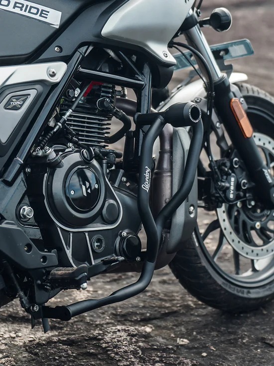 The Legundary Hero Mavrick 440 Thanos Crash guard With Slider is a top-tier motorcycle accessory designed to provide maximum protection and durability. Constructed from high-quality mild steel, this crash guard ensures robust defense against impacts, safeguarding the bike's engine and frame during falls or collisions. The integrated slider feature enhances its protective capabilities by absorbing and dispersing impact forces, thereby minimizing damage to critical components. This Legundary Hero Mavrick 440 Thanos Crashguard With Slider is not only functional but also adds an aesthetically pleasing, rugged look to your motorcycle. Ideal for various bike models, it offers an essential combination of safety, durability, and style, making it a must-have for any serious rider.