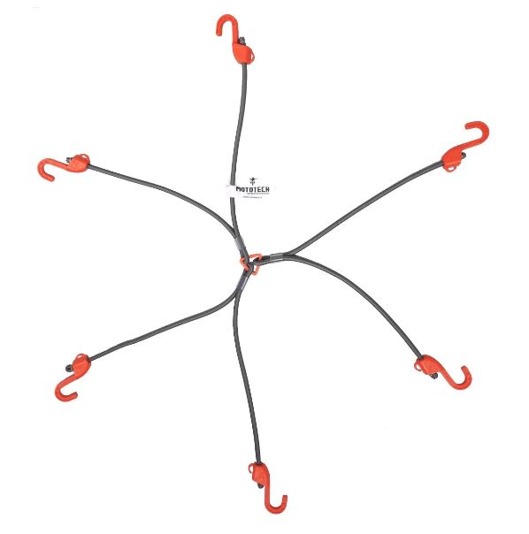 The Hexapod is a multipurpose bungee tie down system, which gives you ample options and ways to fasten luggage or cargo loads using 3 or more of the bungee arms.
