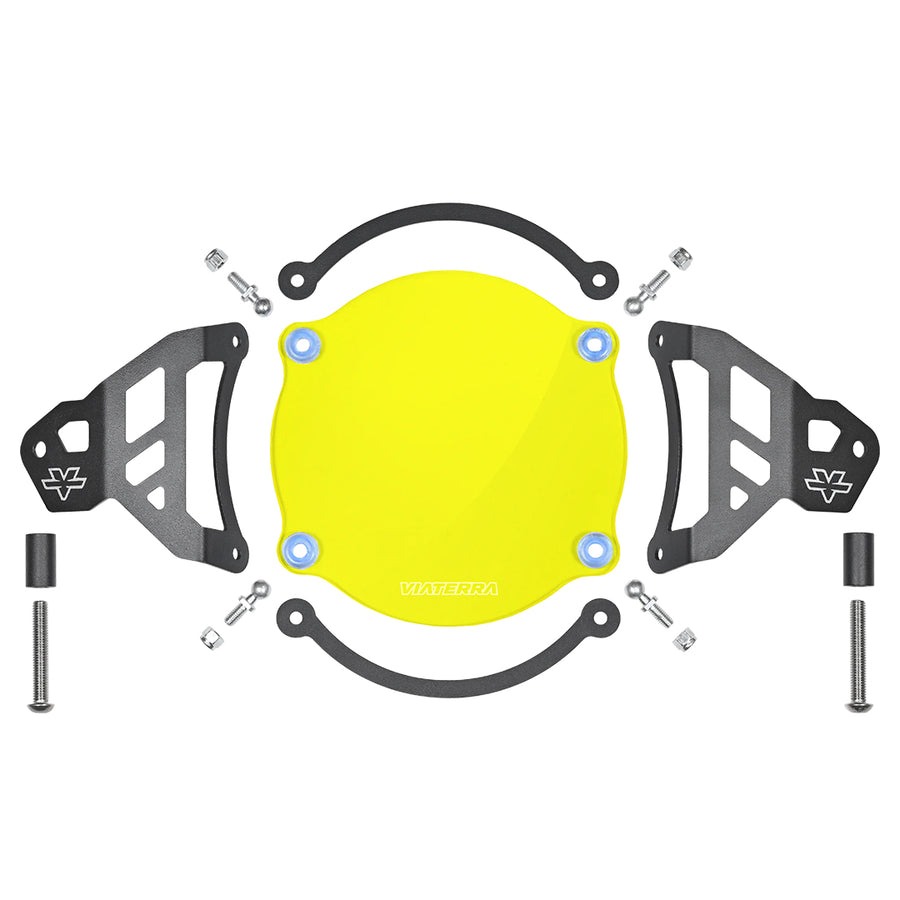 The Viaterra Headlight Guard for the Hero XPulse (XPULSE 4V, XPULSE RALLY EDITION, XPULSE 2V) is different from most other options. The unique combination of a strong metal frame and a clear lens enables this to protect the headlight on your Xpulse 200 from debris while preserving the intensity of the lighting without affecting the spread. The Yellow acrylic lens is easy to remove and re-install, so that you can conveniently clean the headlight and lens, as necessary, to maintain an optimal throw of light at all times.
