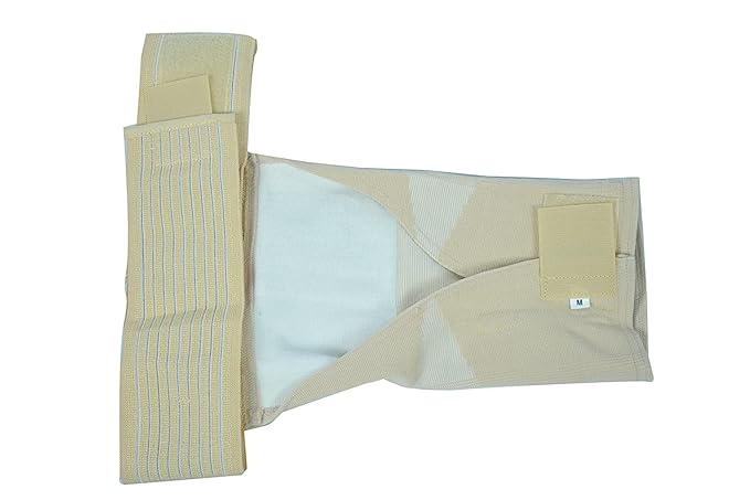 . Decide the appropriate size as per the measurement chart 2. Wear the elastic sleeve on the upper arm 3. Pull the elastic strap diagonally across the chest and fasten it with the velcro