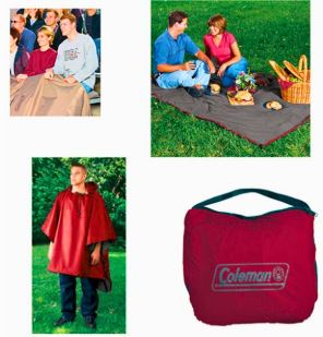 • Waterproof blanket, poncho and stadium seat in one