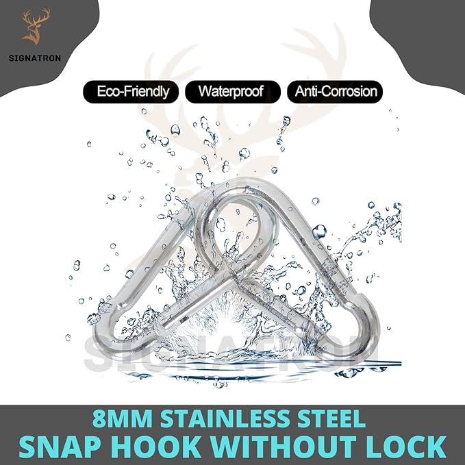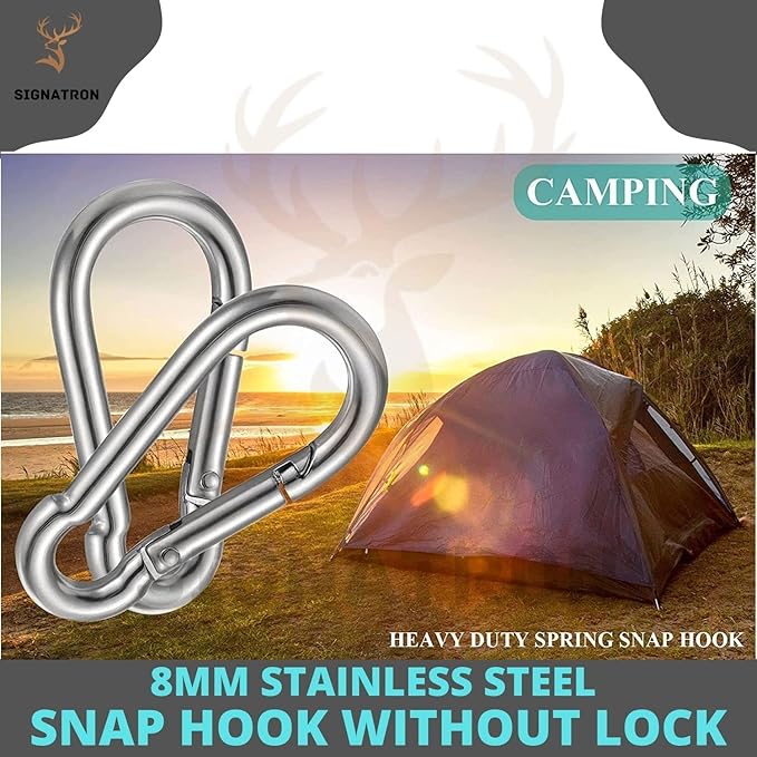 Includes Set of quick links with spring action gate for making quick attachments to rope, straps, chains and cables · Opens and closes smoothly as the spring- loaded gate makes it easy to attach important items to it. · Package contents: 5 x carabiner hooks, 3-3/16" (5 x 60mm) · Made of stainless steel that protects against corrosion · Great for dog leash, camping, fishing, traveling, hiking, connecting items to a belt and any outdoor use · Versatile binding, rigging and anchoring hardware ·