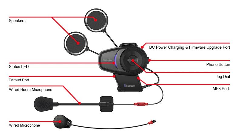 The 10S is the upgraded version of Sena’s flagship Bluetooth headset for motorcycle helmets, the SMH10. Talk to 3 riding companions via HD audio, up to 1.6 km (1.0 mile) away, take calls, listen to music, and more. Riders can connect with all Sena and non-Sena Bluetooth motorcycle headsets using Universal Intercom.