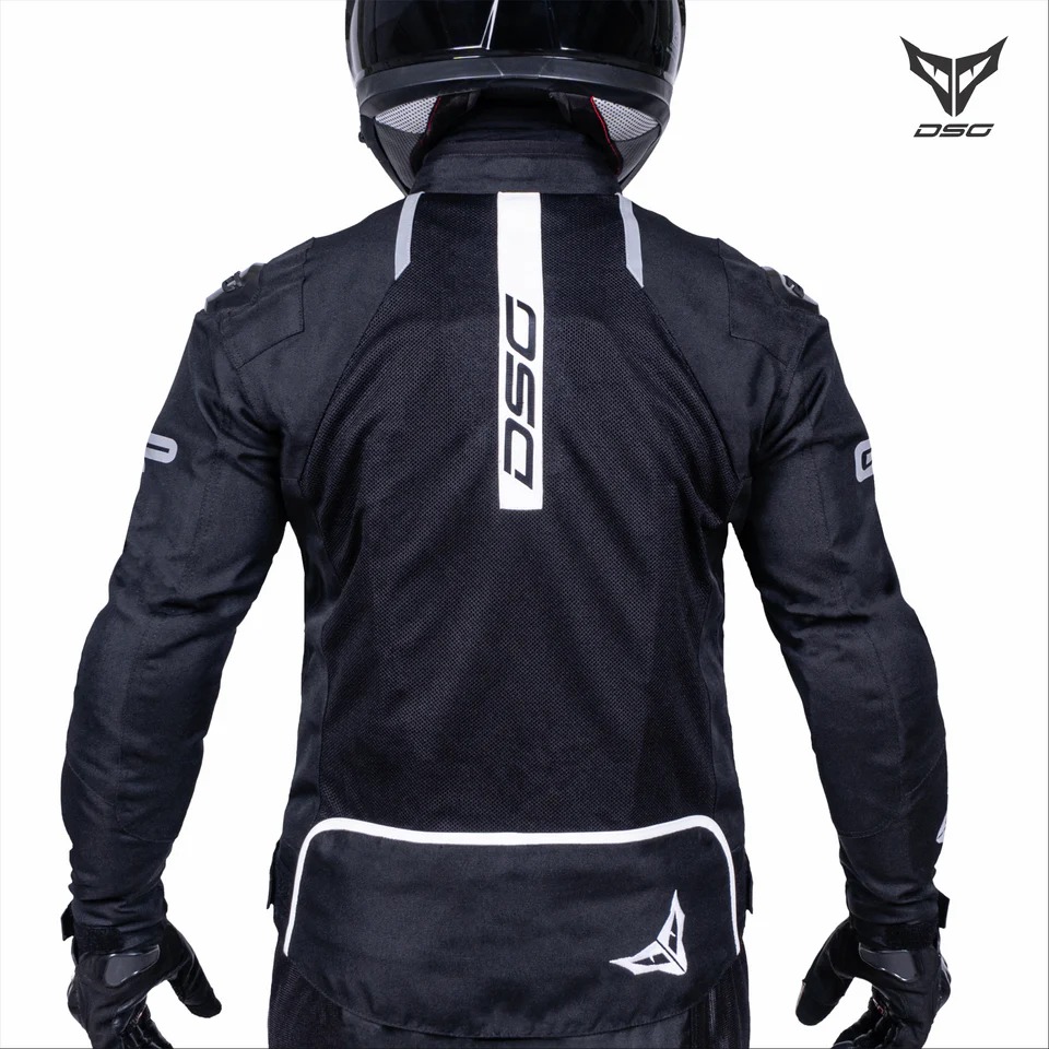 Safety is paramount with DSG Flexion CE-level 2 approved protectors at the elbow, shoulders, and back. Additionally, the DSG Flexion CE-Level 2 approved divided chest inserts with Flexion technology—an exclusive innovation by DSG—come standard with every jacket. The shoulder inserts are further enhanced by externally positioned protectors inspired by MotoGP.
