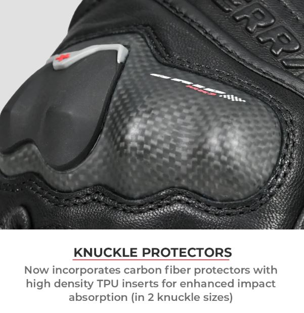 The ViaTerra Grid Mk3 is the latest improved iteration of our feature-loaded full gauntlet riding gloves that offer all the protection you need for track or touring use! The Grid Mk3 continues to feature the same premium, top-of-the-line KNOX SPS 404 protection used in the world’s most advanced gloves. Enhanced with CE Level 2 carbon fiber protectors with TPU inserts for the knuckles, carbon fiber wrist sliders, goat skin leather, and pinky finger bridge, these gloves offer the ultimate protection for Indian riders.
