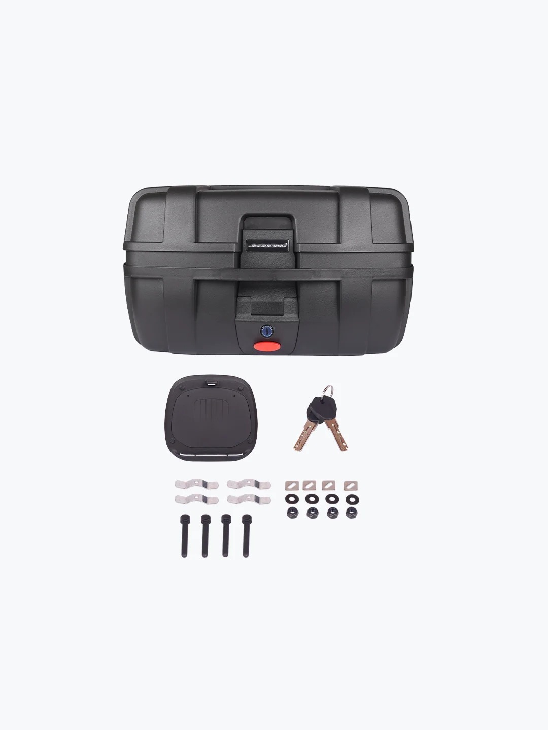 Experience a safe, reliable storage solution with the Jb Racing Top Case ABS. Its 37L capacity ensures plenty of room for all your items, plus it easily attaches to a universal bike. The robust ABS construction will protect your cargo, while the black color adds a stylish touch.