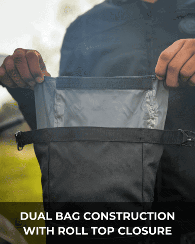 Compack 6 is part of the AuxPack system and it is tailored to be used as a tail bag or luggage expander. Compack 6 is versatile and features a zippered quick access pocket, providing quick and easy access to your essentials while on the road. It has dual bag construction, with an abrasion-resistant outer fabric and a removable waterproof inner liner, ensuring your belongings stay safe and dry. The roll top closure adds an extra layer of protection and waterproofing. When the Comapck 6 is not mounted on the motorcycle, it can be converted into a stylish sling bag, making it easy to carry on the go. It also has a grab handle for added comfort and convenience.