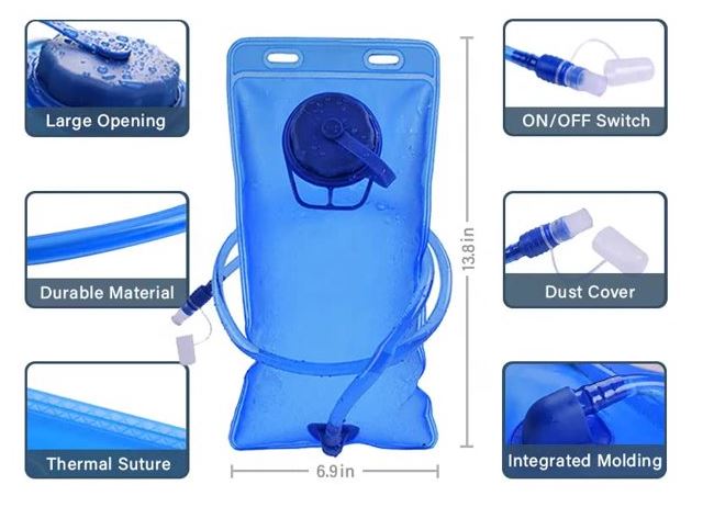 Temperature Resistant: No matter the weather conditions, our hydration bladder can handle it. Withstanding temperatures from -20 to 50 degrees Celsius, it is designed to endure both hot and cold climates. The tube also resists temperature changes, ensuring a consistent water flow when you need it most. Perfectly Compatible: Measuring L 13.8” x W 6.8”, our hydration bladder is compatible with most hydration packs on the market. The tube, with a diameter of 0.4” and a length of 36”, provides a wholesome flow for easy drinking, ensuring you stay perfectly hydrated during your outdoor activities. Food-Grade EVA Material: We prioritise your safety and health. That’s why our hydration bladder is made from food-grade EVA material, guaranteeing that no harmful substances will contaminate your drink. Upgrade your hydration system today with our Military-Grade 2L Hydration Bladder, the ultimate companion for hiking, biking, cycling, climbing, backpacking, hunting, running, camping, and all your favourite outdoor sports. Stay hydrated, stay confident!