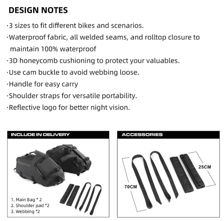 RHINOWALK - MT1428 WATERPROOF RACKLESS - SADDLE BAG - 28L