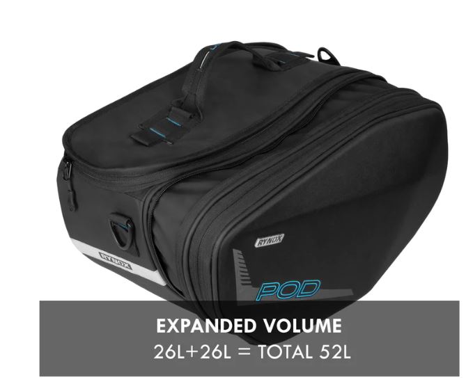 The Pod Saddlebags 52L- Stormproof is purpose-built for motorcycles with upswept silencers, the contoured profile and semi-rigid construction, the Pod ensure a secure fit even on long hauls. Built using durable materials and a stormproof construction, they’re the ideal solution for secure gear storage for sport touring