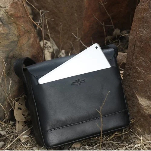 the messenger bag is inspired from the swiss ammunition bag of the second world war. we have hand forged the bag using the finest materials so that it can survive a war. it's an ideal everyday satchel and can easily accommodate an ipad, riding gear and even a couple of t-shirts. it has two small pockets on the inside and one at the back.