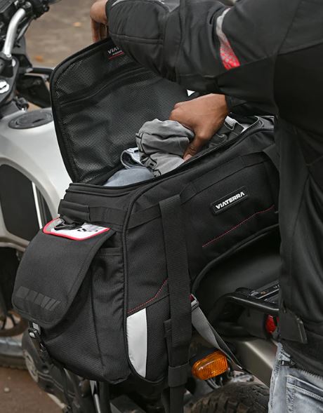 With a 48L capacity, this universal luggage system carries enough for a 5-7 trip and works on almost all motorcycles. Using the MOLLE loop system and compression straps, you can choose to add on a 2/3 person camping tent, a sleeping bag or the POD 12L/ POD 22L expanders to better organize & separate out your stuff. The bag comes with an external rain cover and a detachable shoulder belt.