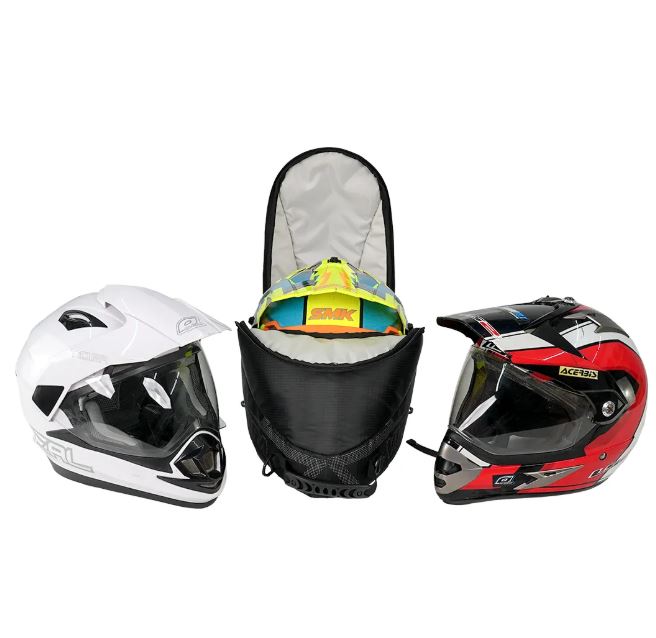 The ViaTerra ADV Helmet bag is designed to safeguard your helmet from bumps, scratches, and dust during everyday handling or storage at home, helping to extend its lifespan. Compatible with all ADV/motocross helmets, even with the peak on, this bag offers versatile carrying options with backpack straps, a shoulder belt, and a carry handle. Its airport-friendly design makes transportation easy. The bottom zipper allows convenient access to the helmet cavity, which can also be used as a storage pocket for gloves, a balaclava, a wallet, and other small essentials.
