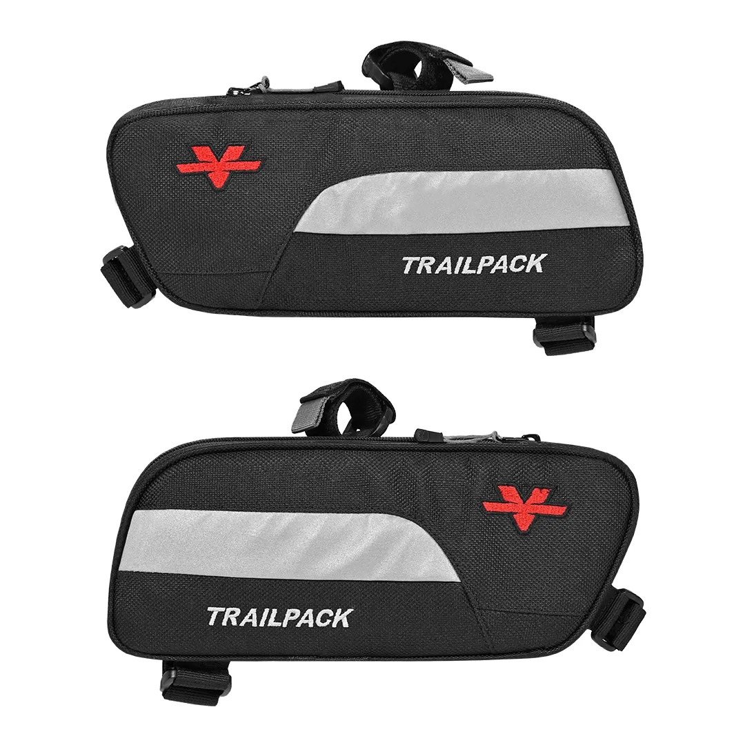 Introducing the ViaTerra Trailpack set for the KTM Adventure 390/250 - a specially designed luggage system that fits snugly within the OEM crash guards, providing easy access to the essential gear you need on the road. With a 4L total capacity, these bags are perfect for carrying spare parts, extra tubes, energy bars and other items you may need on the trail. The unique design ensures that the bags fit securely and do not impede any other luggage you may be carrying, even at high speeds on the highways or during rough trail rides. These bags are a must-have for any adventurous rider looking to keep their gear organized and protected while pushing the limits of their riding abilities.